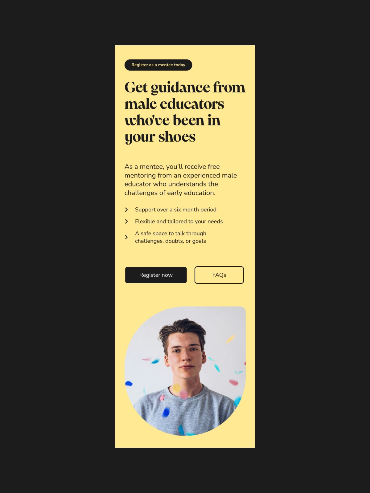 The program needed to connect these educators with experienced male mentors who understand the realities of early childhood education, so they could share strategies, protect their wellbeing, and see a future for themselves in the sector.