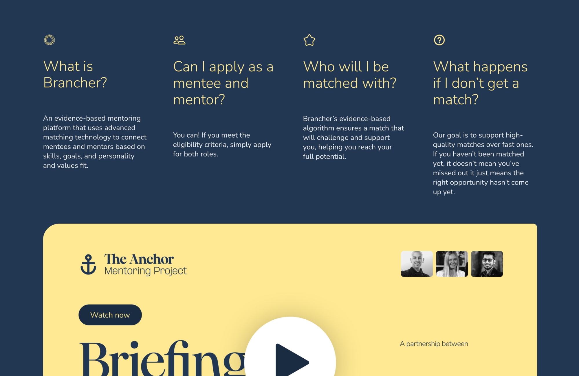 On the build side, Lobos used rapid tools including Figma for interface concepts, Relume for architecture and component exploration, Bricks for WordPress implementation, Perplexity for fast sector and language research, Snapforms for simple, compliant data capture, Customer.io for automated onboarding flows, and the Brancher platform itself to underpin matching and ongoing mentoring workflows. This stack allowed the team to stand up a cohesive brand, website, email flows, and social content in weeks rather than months, while keeping room for iteration once the first cohorts are underway.
